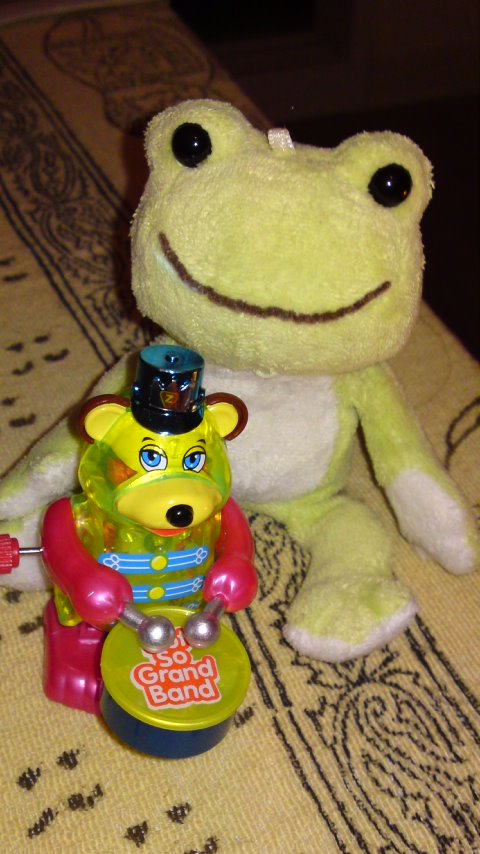 可愛らしい合奏団ですね!ピクルスが雨を呼んで、くまさんが雷を呼び寄せるような。