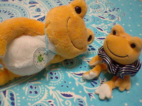 ミニピクルスの首に巻かれているのはシュシュ、でしょうか? ちょっとオシャレな感じで、それを見つめるピクルスの表情もまた、 見守るかのように優しげで…。 この一枚で絵本が出来そうなぐらい、色々な想像が頭を掻き立てました。 何だか今にもピクルス同士の会話が聞こえてきそうです。 けろぴょん様、有難うございました!